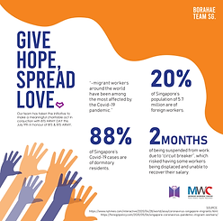 In 2021, the team created a fundraising campaign for the Migrant Workers Assistance fund under Migrant Workers' Centre (MWC). The COVID-19 pandemic brought to light the challenges faced by our migrant worker community, including outbreaks in dormitories and subsequent safety measures leading to displacement and loss of income for some workers.